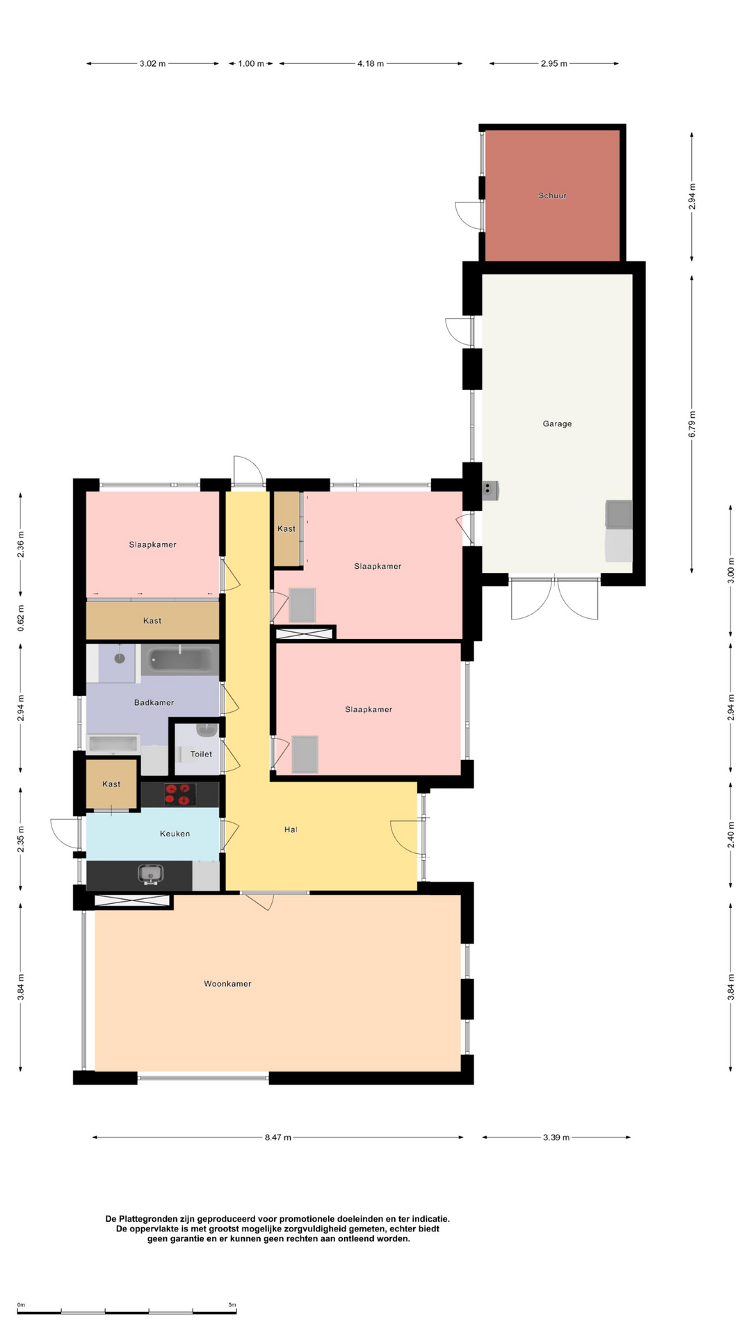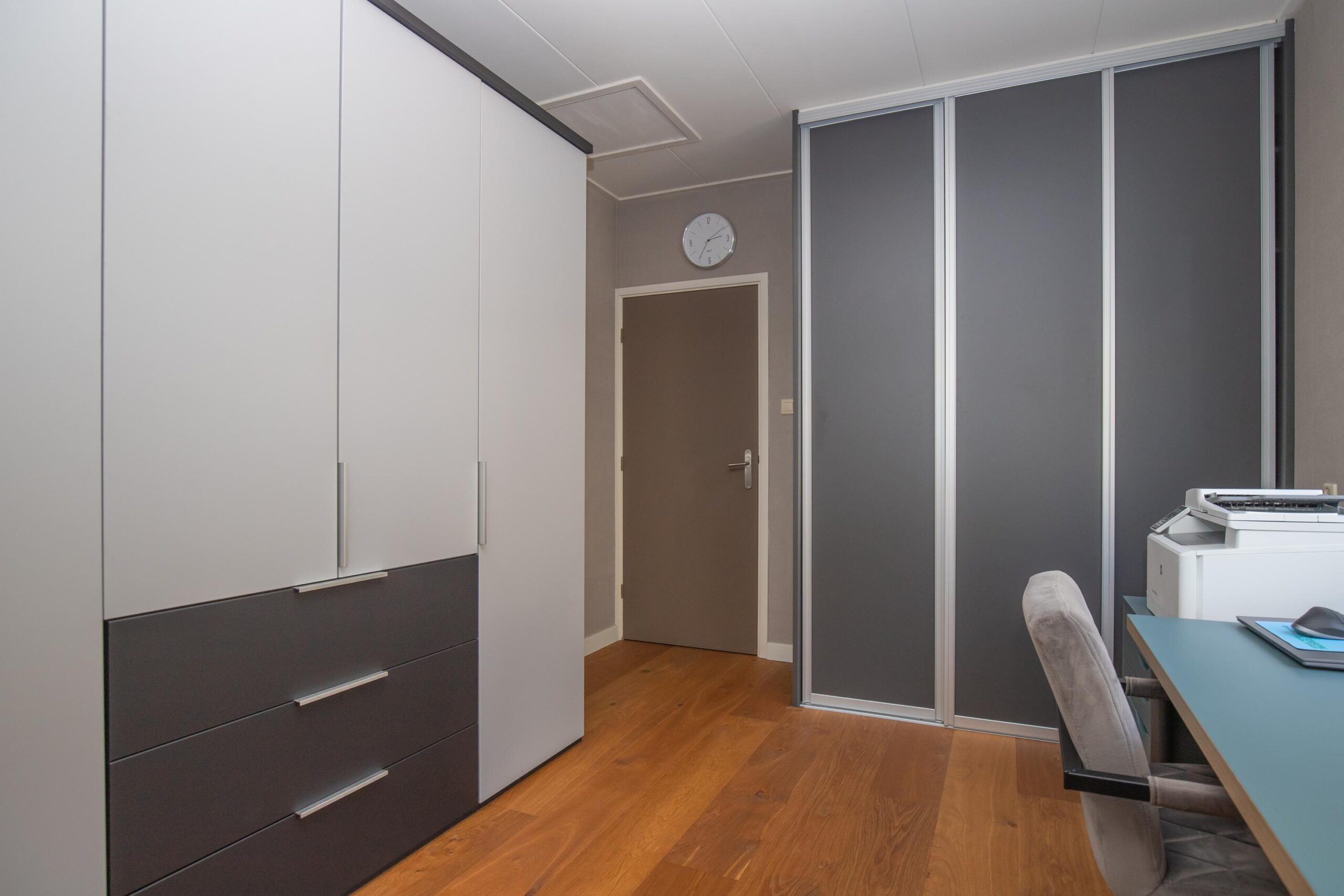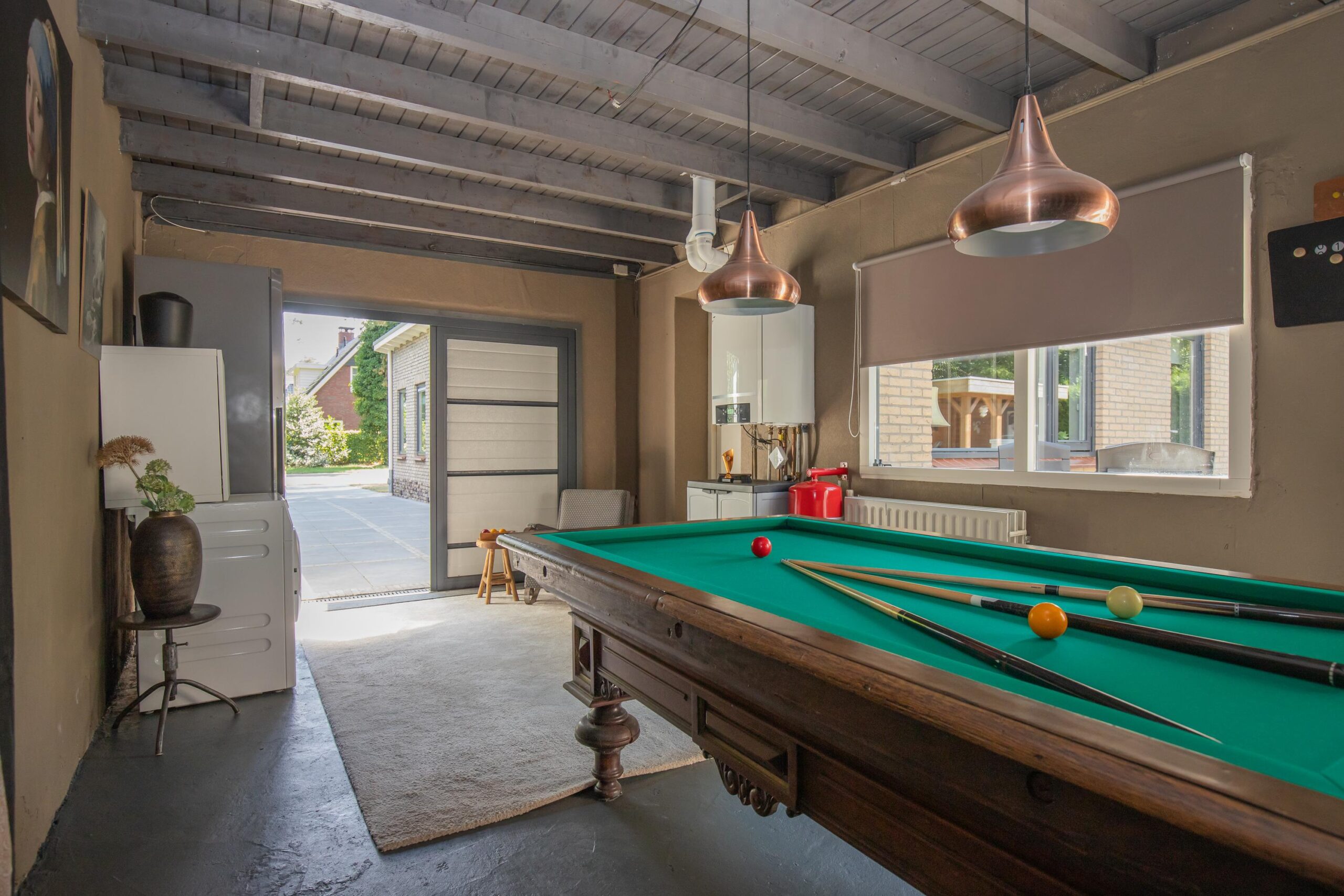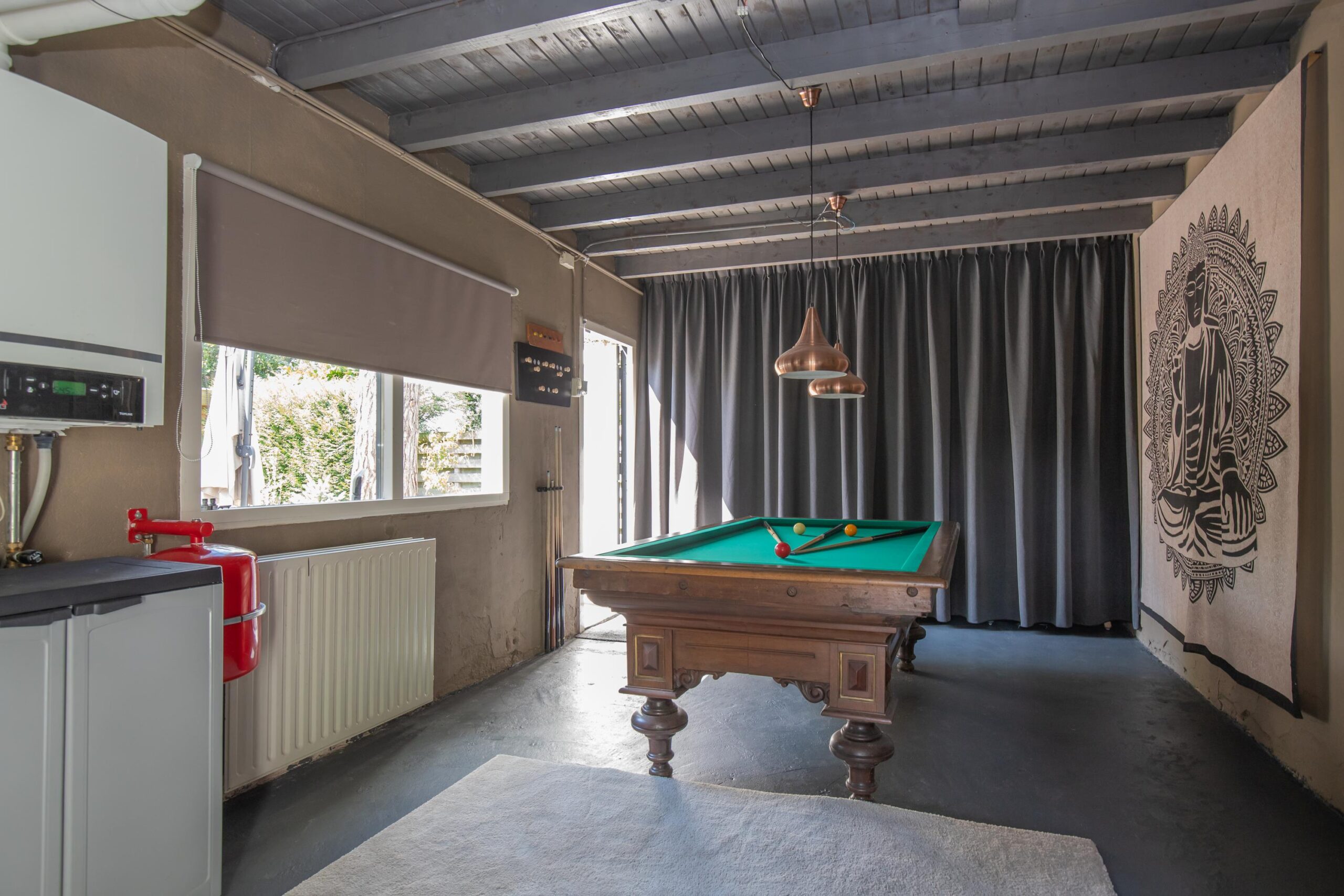 Daarnaast zijn er drie slaapkamers van respectievelijk ca. 9 m², 12,3 m² en 12,5 m². Vanuit één van de slaapkamers heb je directe toegang tot de garage, momenteel ingericht als gezellige biljartkamer, met dubbele deuren naar de oprit en een loopdeur naar de tuin.