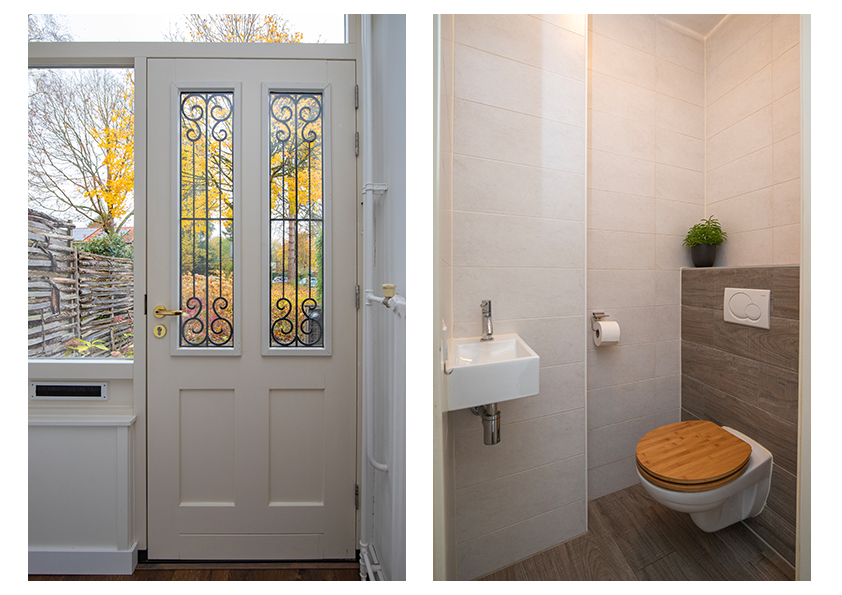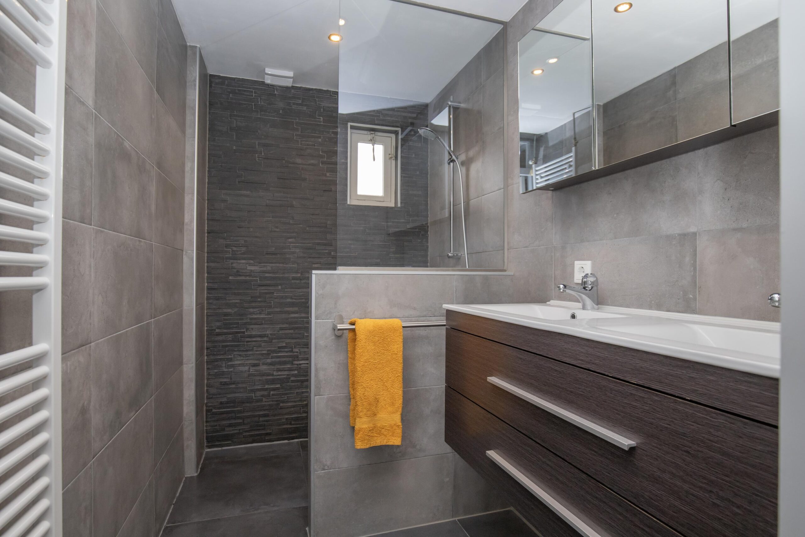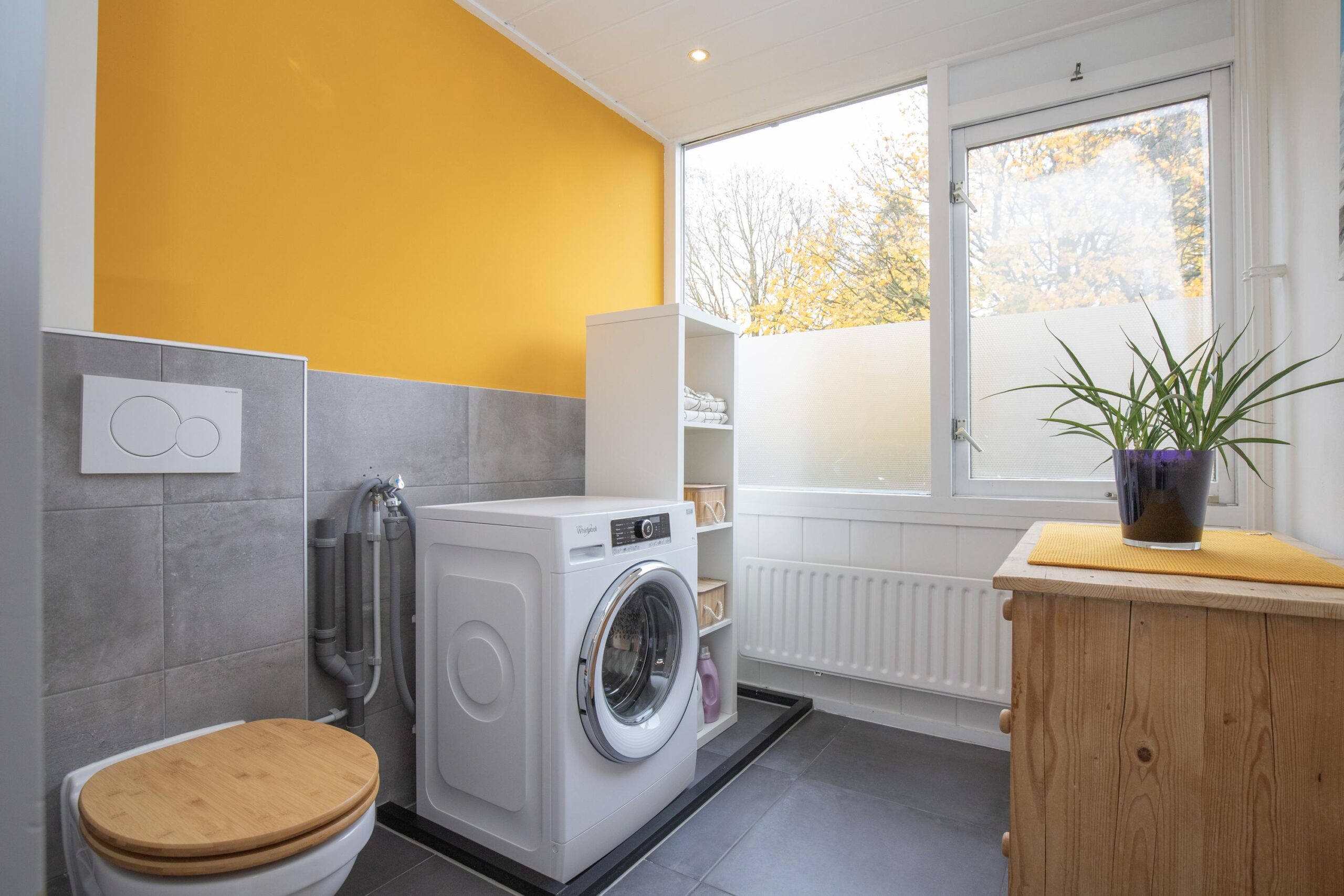 Op de eerste verdieping bevinden zich drie goed bemeten slaapkamers en een moderne, geheel betegelde badkamer met inloopdouche en een wastafelmeubel met dubbele wasbak. De multifunctionele vierde kamer beschikt over aansluitingen voor witgoed en een tweede toilet – praktisch en netjes afgewerkt.