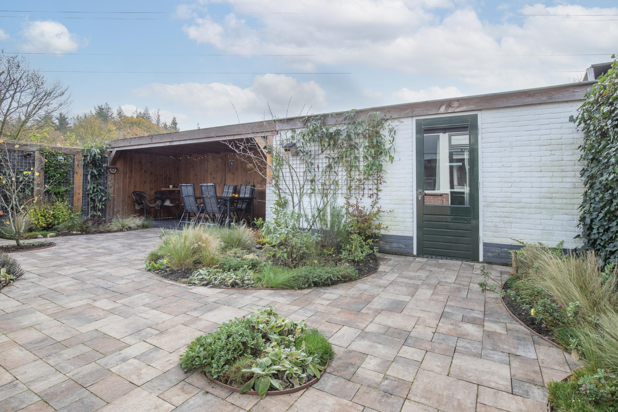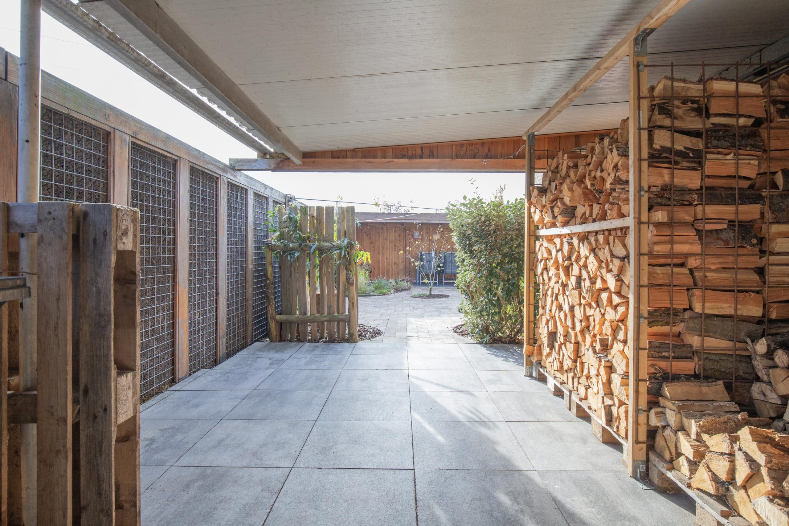 De tuin aan de achterzijde is fraai aangelegd en biedt volop privacy. Op elk moment van de dag is er een fijne plek in de zon of schaduw te vinden. De gezellige veranda is ideaal voor lange zomeravonden; daarnaast zijn er een berging, een ruime overdekte houtopslag, een buitenkraan, en een fietsenstalling aanwezig. De tuin is daarmee van alle gemakken voorzien. Via de schuifdeur is bovendien parkeren op eigen terrein mogelijk.