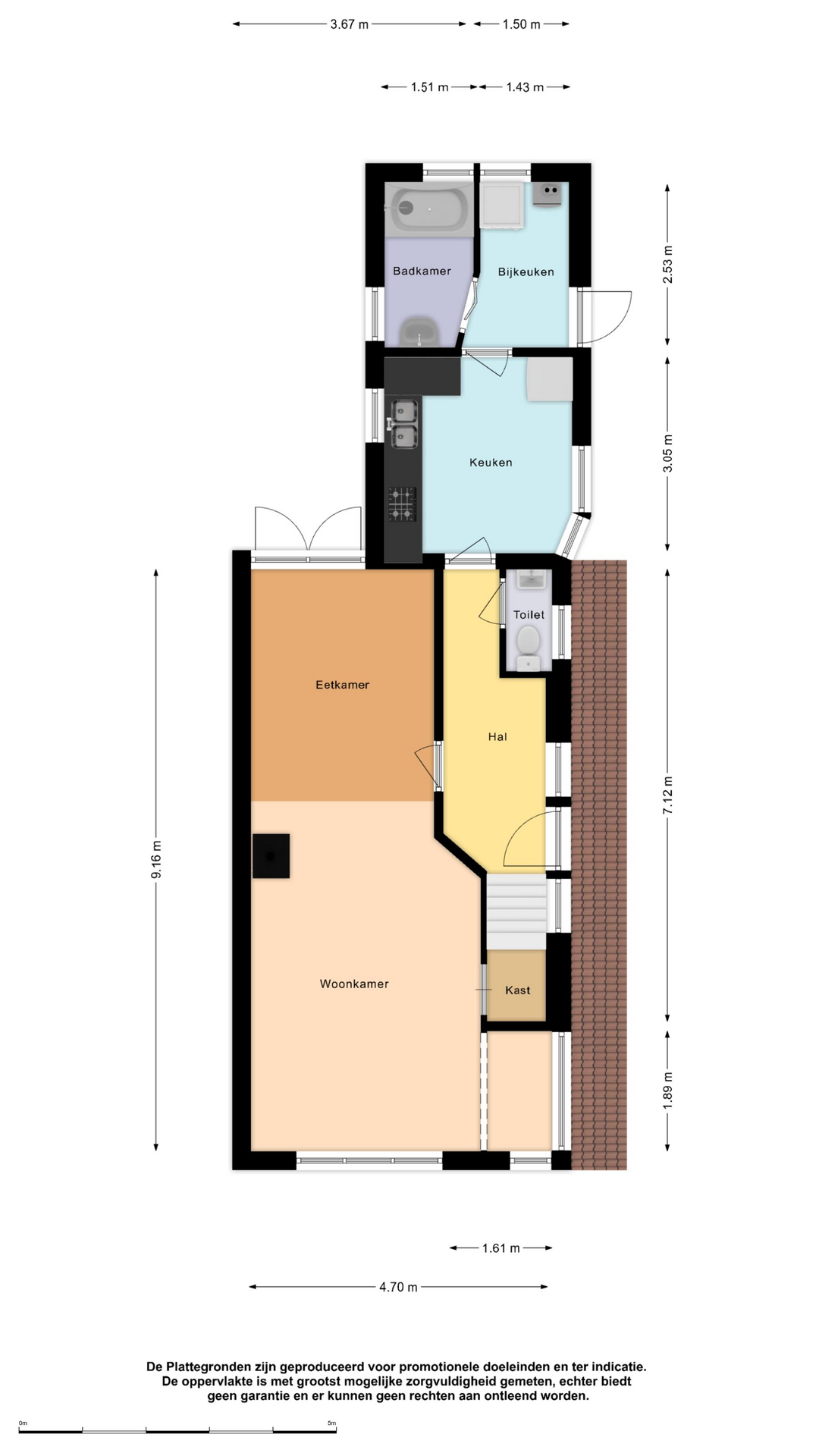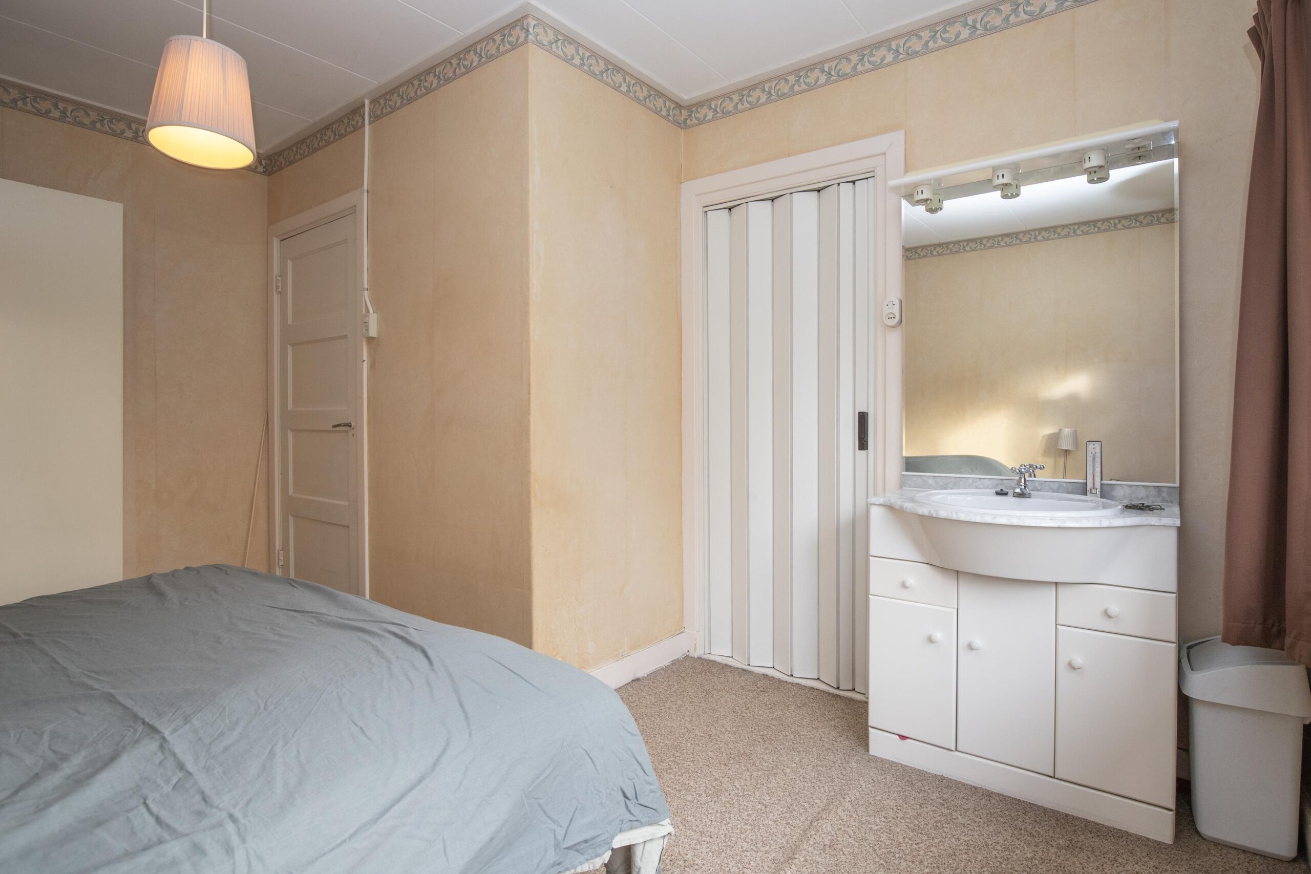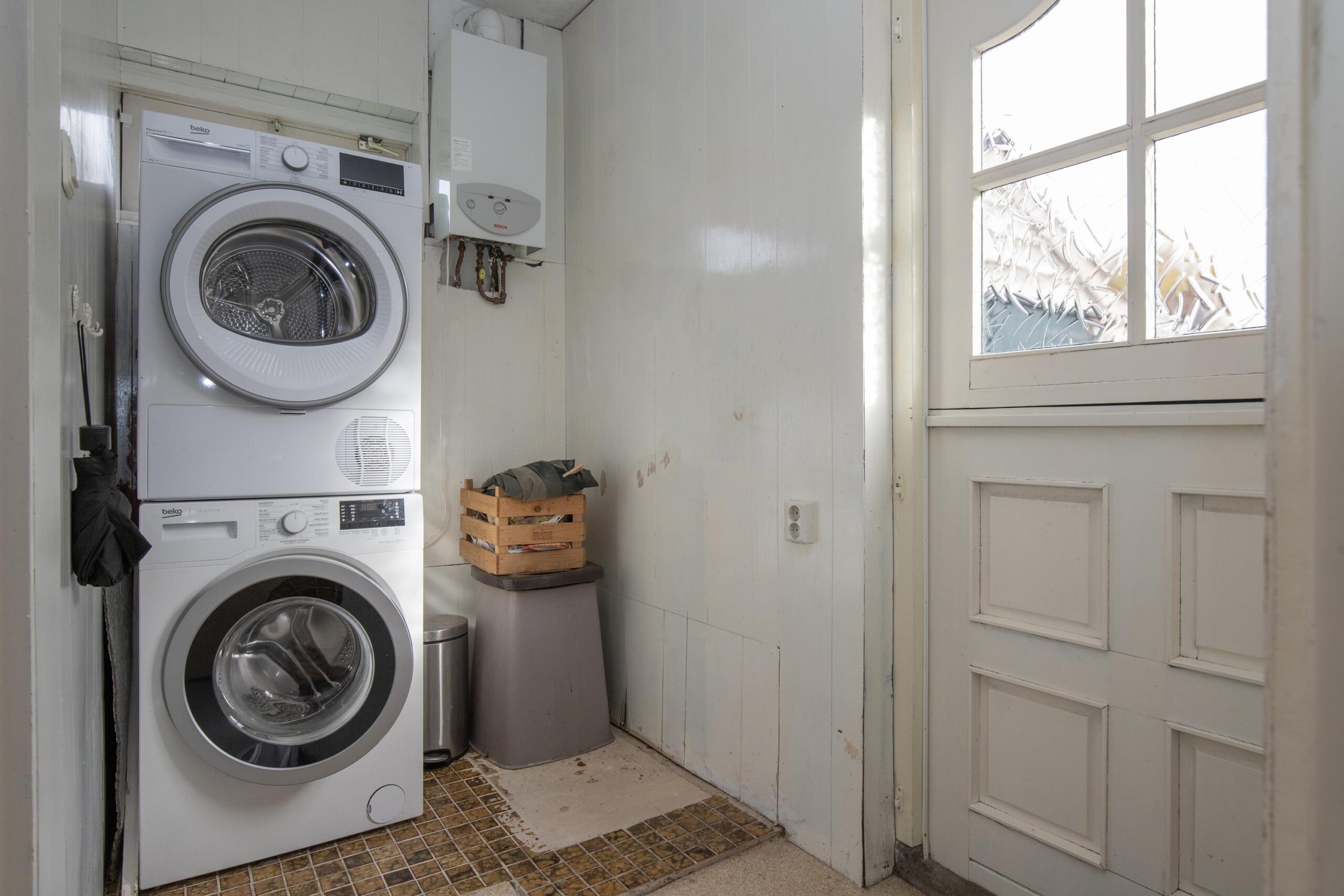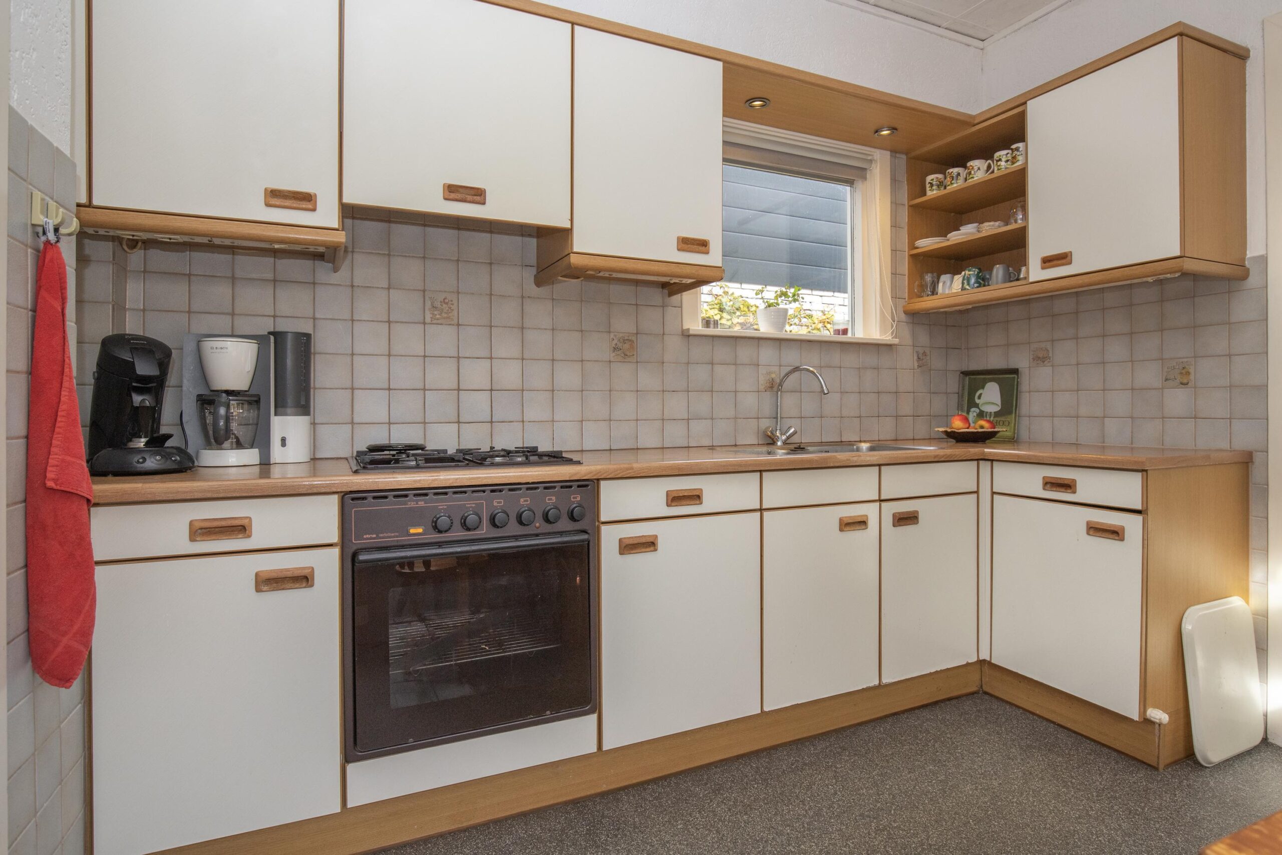 De keuken, in L-opstelling, is praktisch en licht, met ruimte voor een eettafel. Aansluitend vindt u de bijkeuken met witgoedaansluitingen en de cv-opstelling. De badkamer is voorzien van bad/douchecombinatie en wastafel.