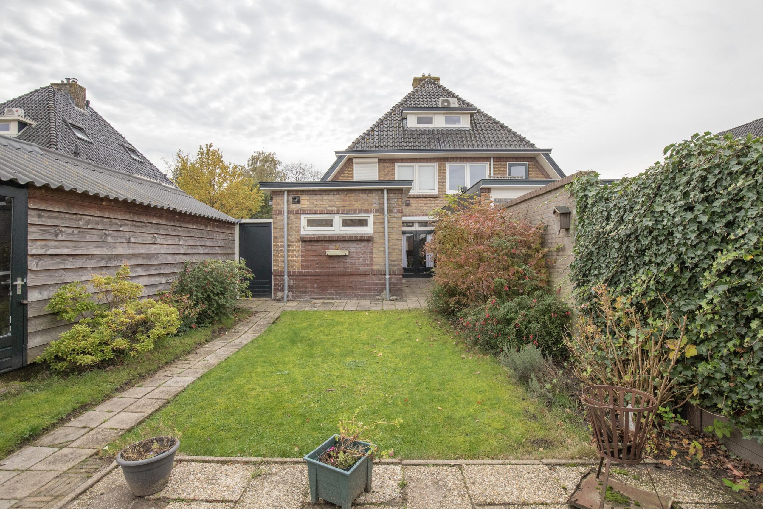 Stap binnen in de nostalgische sfeer van de jaren ’30 en laat u betoveren door deze karakteristieke twee-onder-een-kapwoning, gelegen op een prachtige locatie op loopafstand van het gezellige dorpshart van Woudenberg. Hier vindt u een huis met ziel — vol authentieke details, warme sfeer en met alle ruimte om uw eigen woonwensen tot leven te brengen. De woning staat op een riant perceel met een diepe, fraai aangelegde achtertuin die volop privacy biedt. Onder het romantische prieel kunt u heerlijk genieten van lange zomeravonden in een oase van rust. De ruime oprit biedt plek voor meerdere auto’s en de grote garage heeft volop bergruimte voor fietsen, tuingereedschap of een hobbyhoek. Aan de voorzijde kijkt u vrij uit over een groene strook met een vijverpartij — een uitzicht dat nooit verveelt.