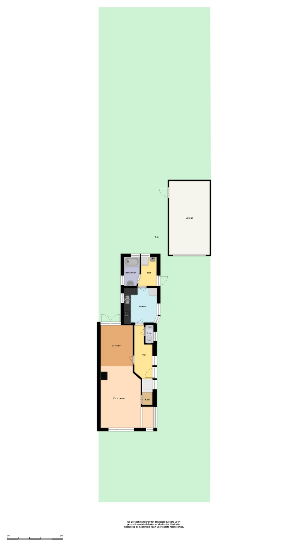 De woning heeft twee kadastraal, het perceel waar de woning en bijgebouwen op staan is 445 m². het andere perceel ligt voor de woning en bevat de groenstrook tot de weg.