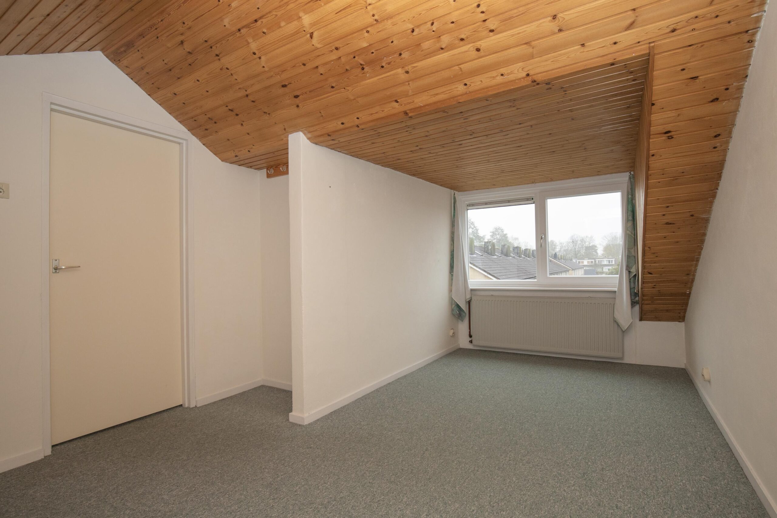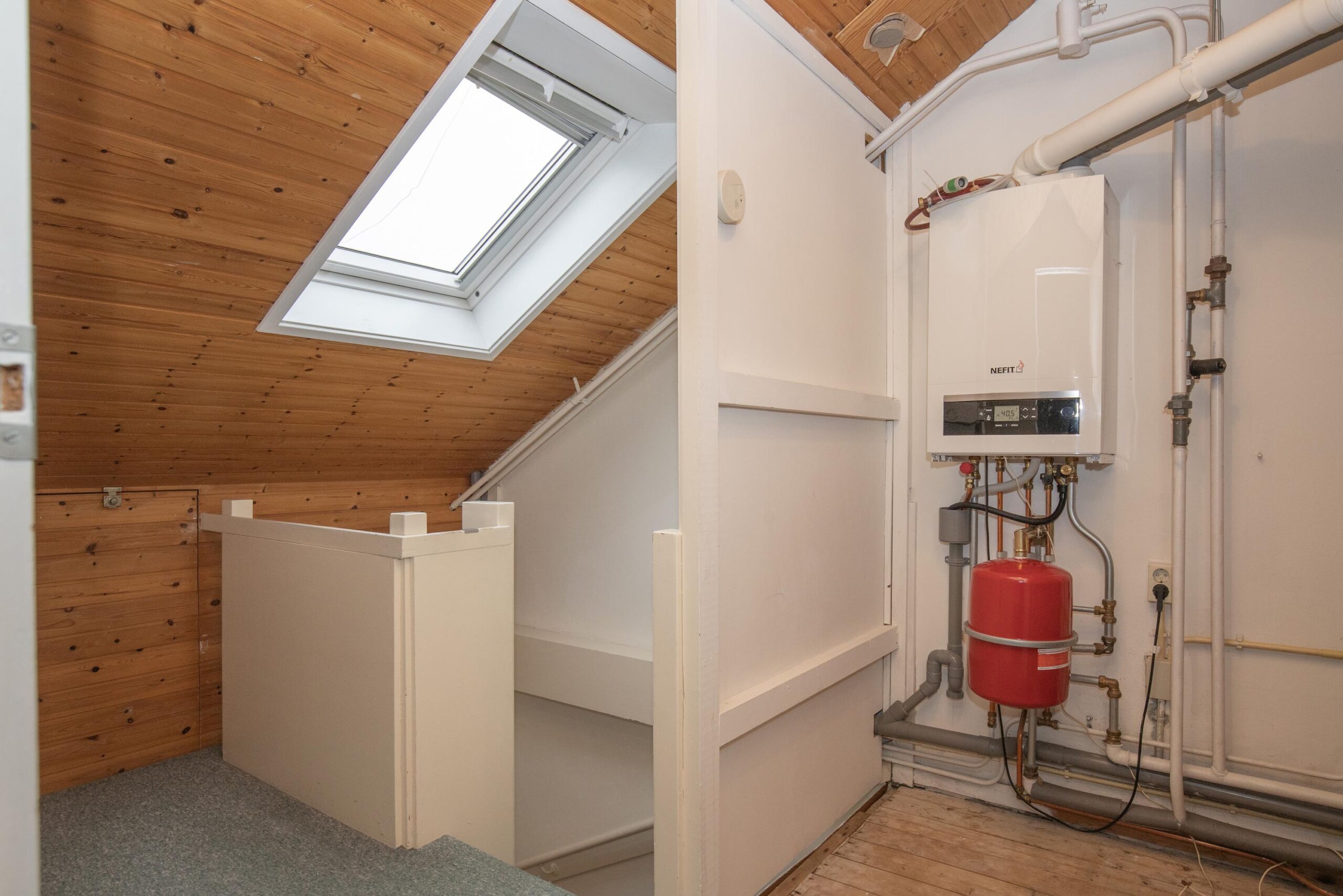 De vaste trap brengt je naar de ruime zolderverdieping met aan de achterzijde over de gehele breedte van de woning een dakkapel. Via de overloop van deze verdieping bereikt u twee slaapkamers, een grote en kleinere. De opstelplaats voor de Cv ketel bevindt zich eveneens op deze verdieping, er is een aansluiting voor de wasmachine.
