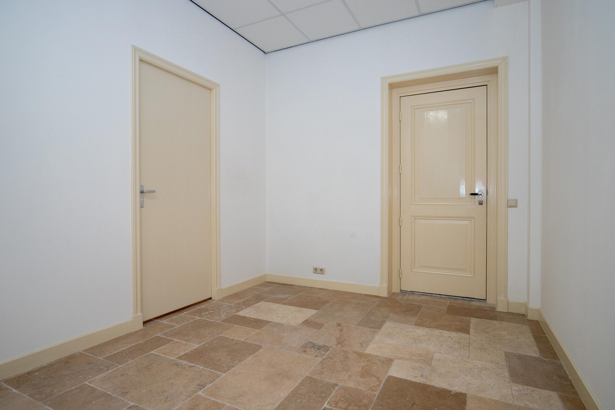 U betreedt de woning via een stijlvol tochtportaal, waarna de imposante hal toegang biedt tot diverse vertrekken. De statige kamer-en-suite met vaste kasten, een sfeervolle schouw en een prachtige plavuizen vloer vormt het hart van de woning. Er zijn twee royale slaapkamers