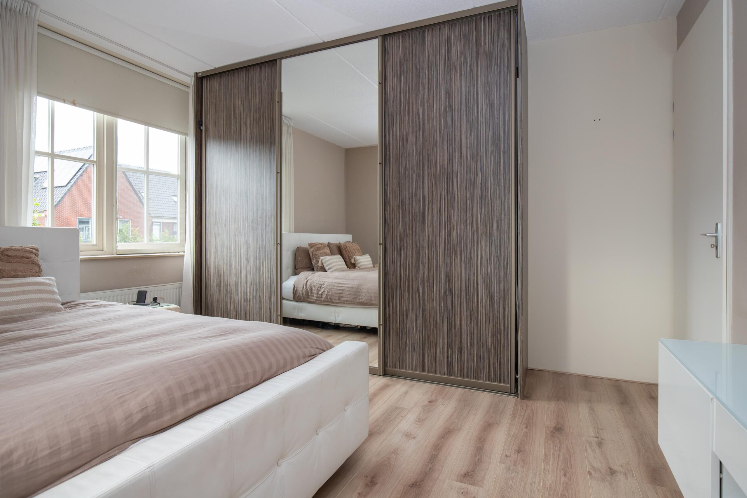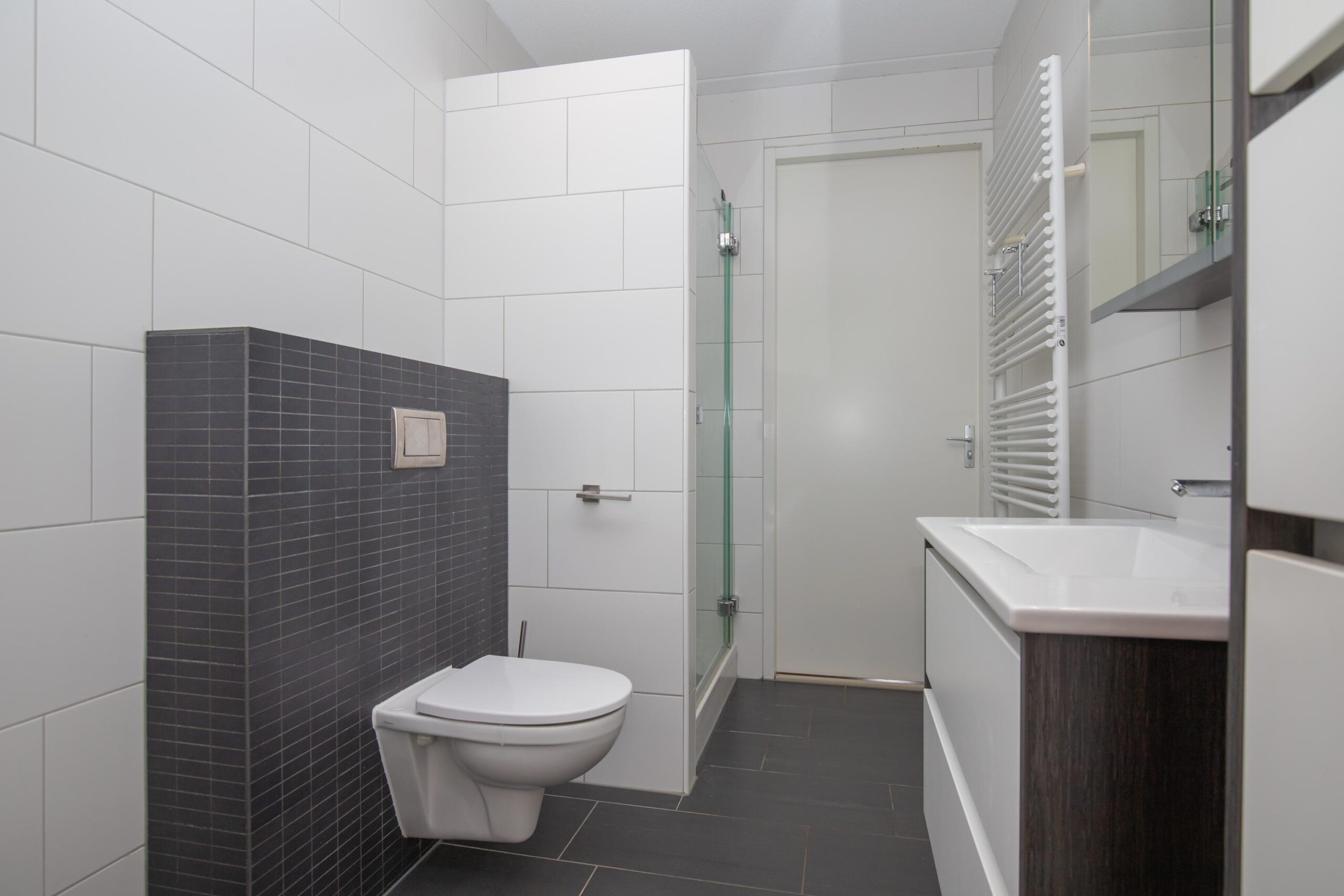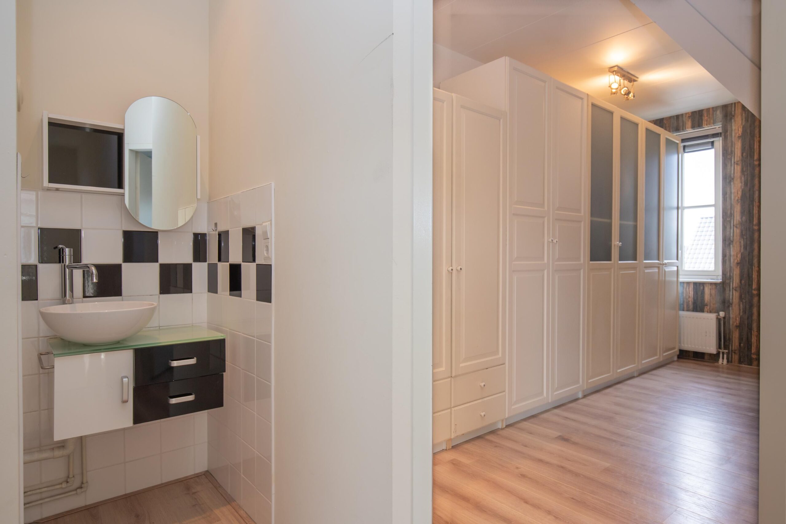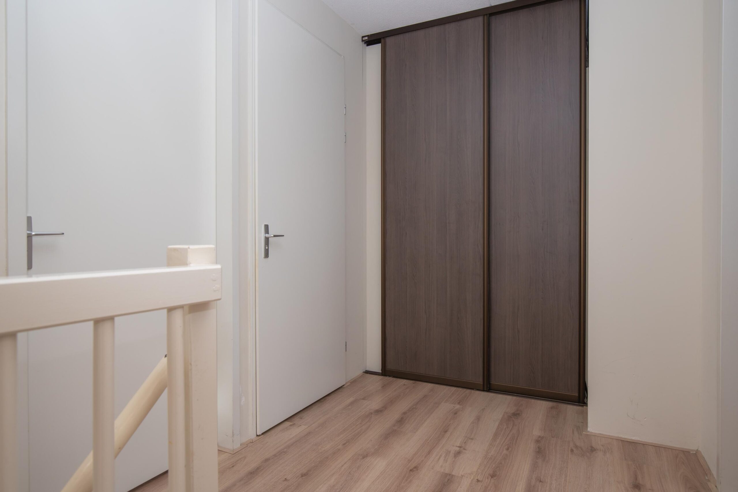 De overloop met vaste kast biedt toegang tot drie ruime slaapkamers, waarvan twee met ingebouwde kastruimte. De luxe badkamer is stijlvol betegeld en beschikt over een ligbad, inloopdouche, tweede toilet en een modern wastafelmeubel.
