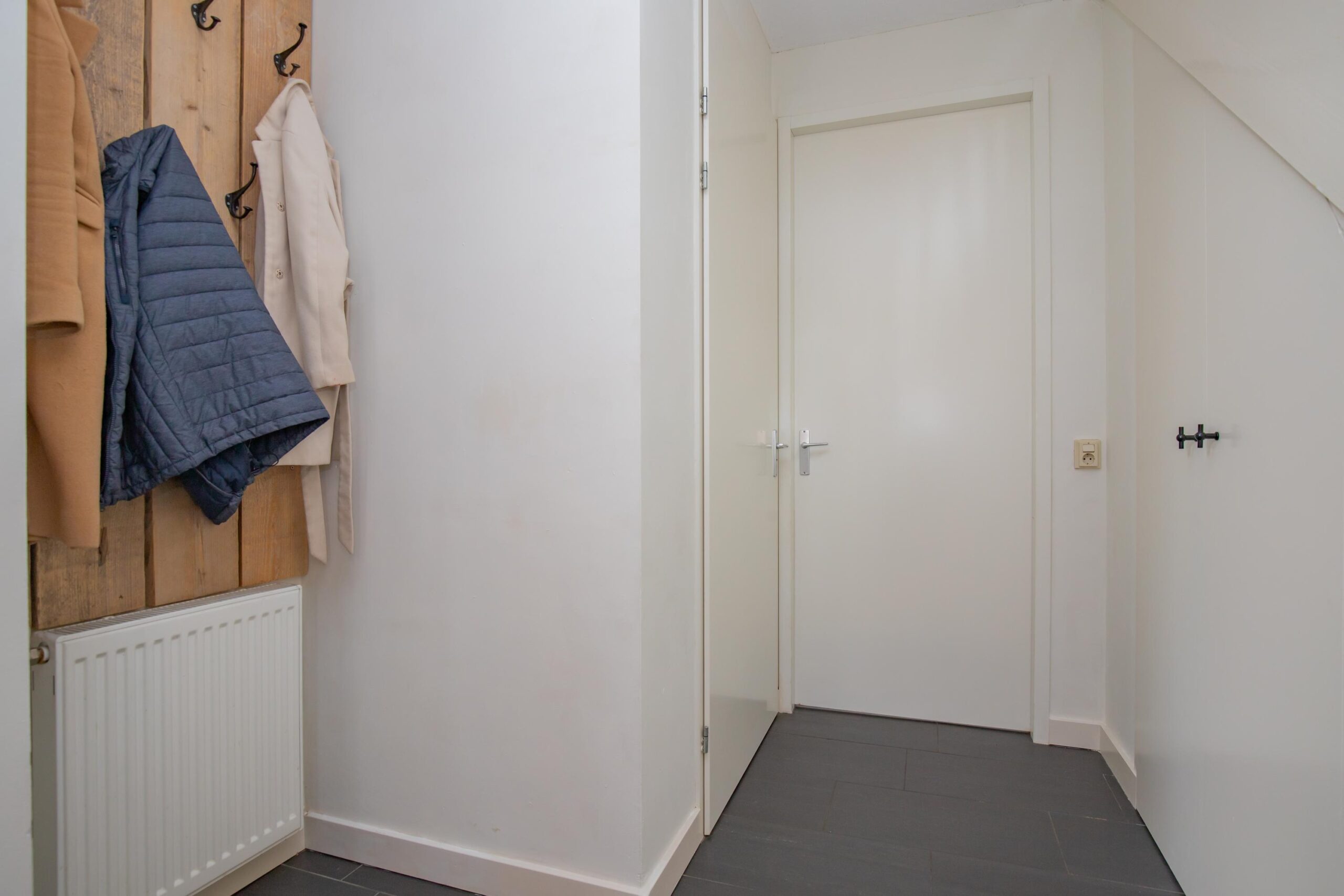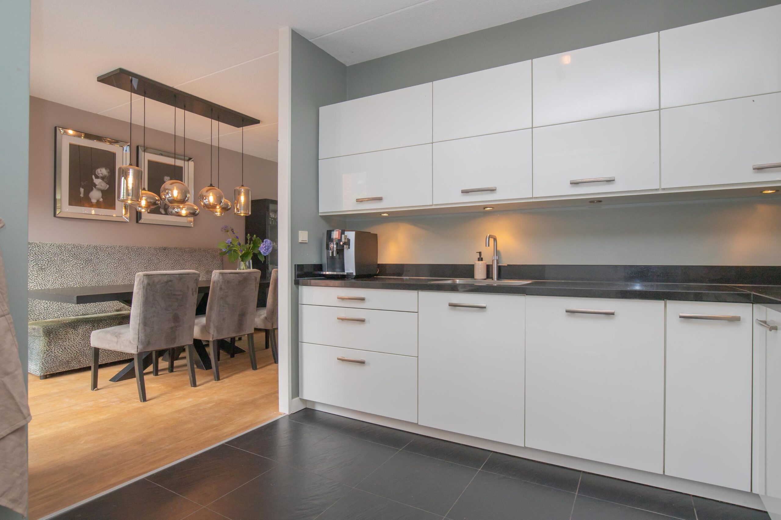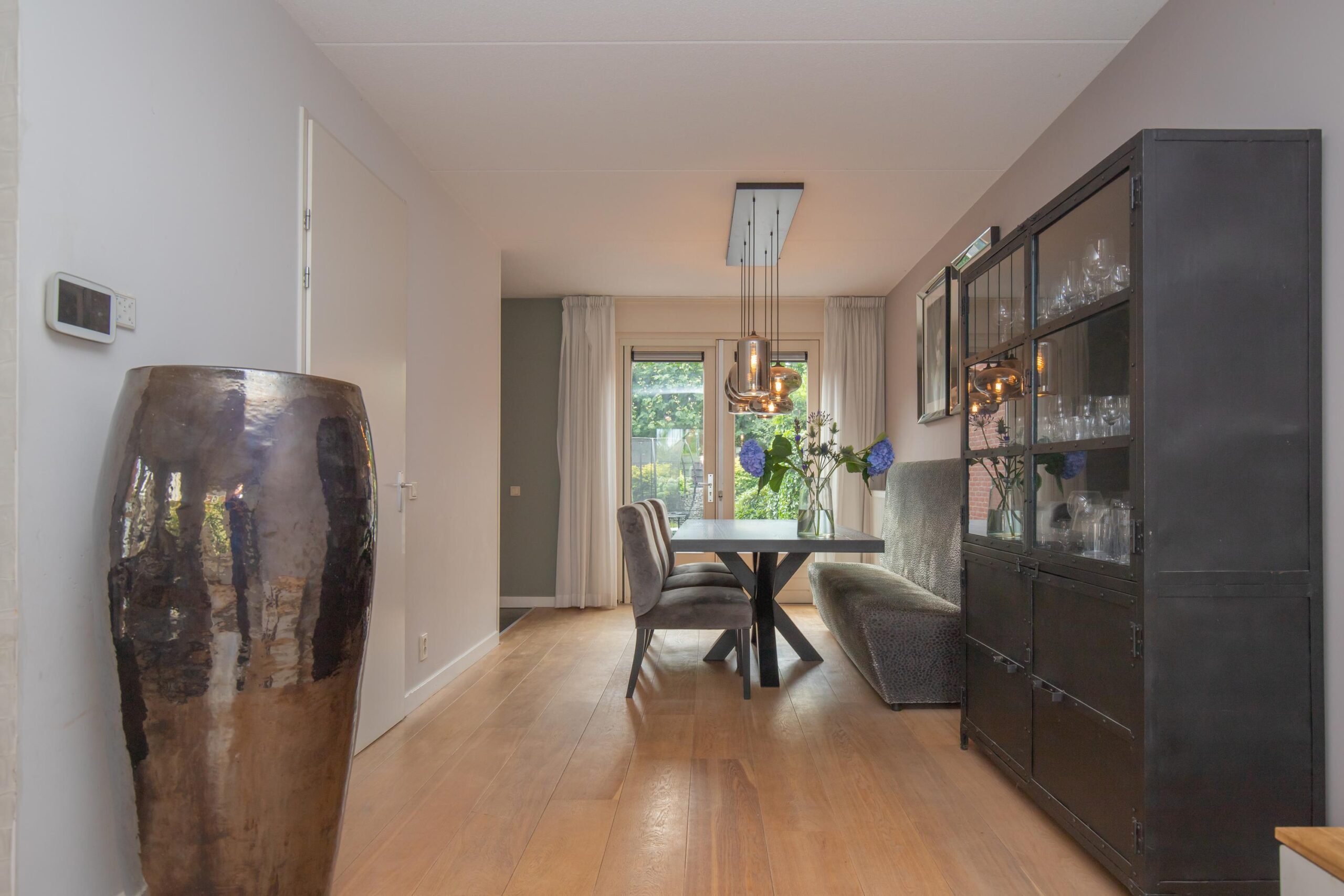 Via de ruime hal met meterkast, modern toilet en trapopgang bereikt u de lichte woonkamer met grote raampartijen – een heerlijke plek voor gezellig samenzijn. De royale woonkeuken met openslaande deuren naar de tuin biedt volop ruimte voor een grote eettafel en is compleet uitgerust met hoogwaardige inbouwapparatuur, waaronder een 5-pits gasfornuis, quooker, oven, magnetron, vaatwasser, koelkast en afzuigkap. Grenzend aan de keuken vindt u de bijkeuken met witgoedaansluitingen en toegang tot de geïsoleerde garage, die voorzien is van een praktische kastenwand, uitstortgootsteen en dubbele deuren naar de oprit. De gehele begane grond is voorzien van een warme eikenhouten vloer en strak gestuukte wanden.