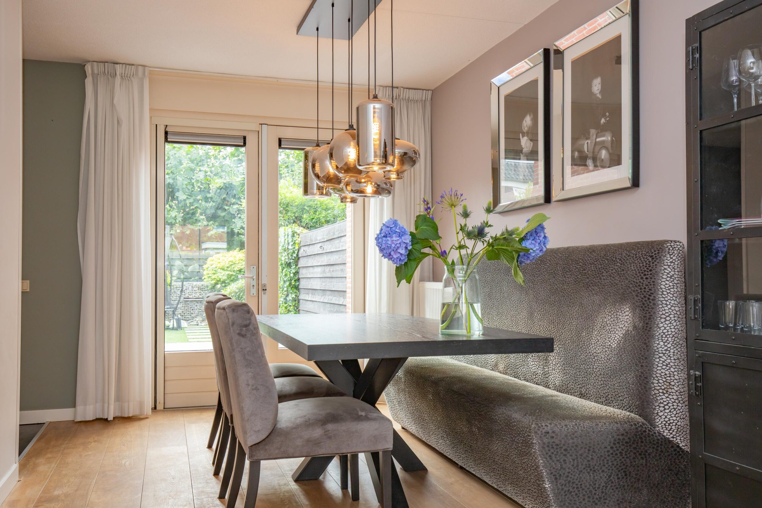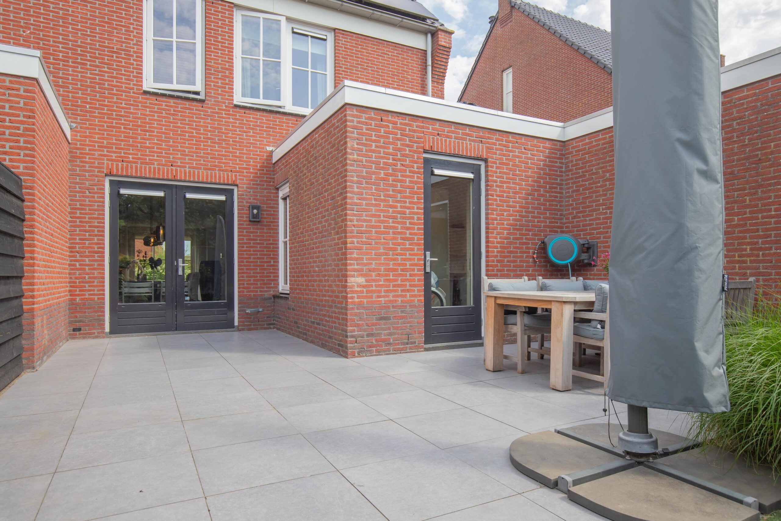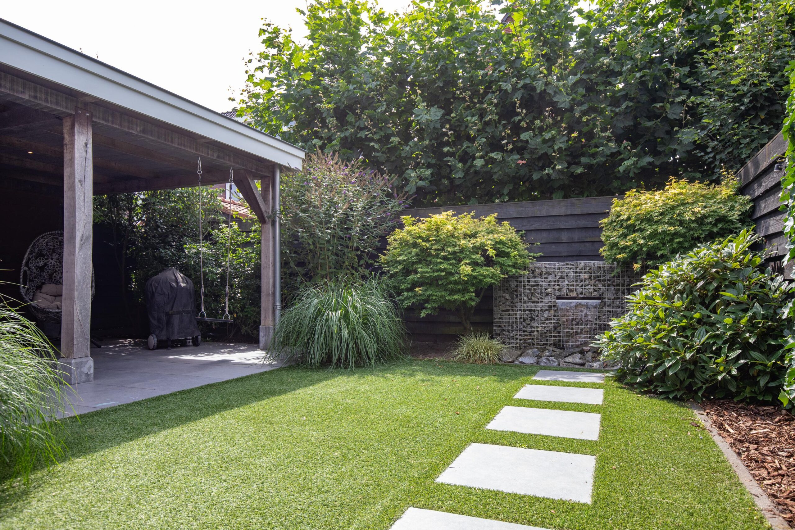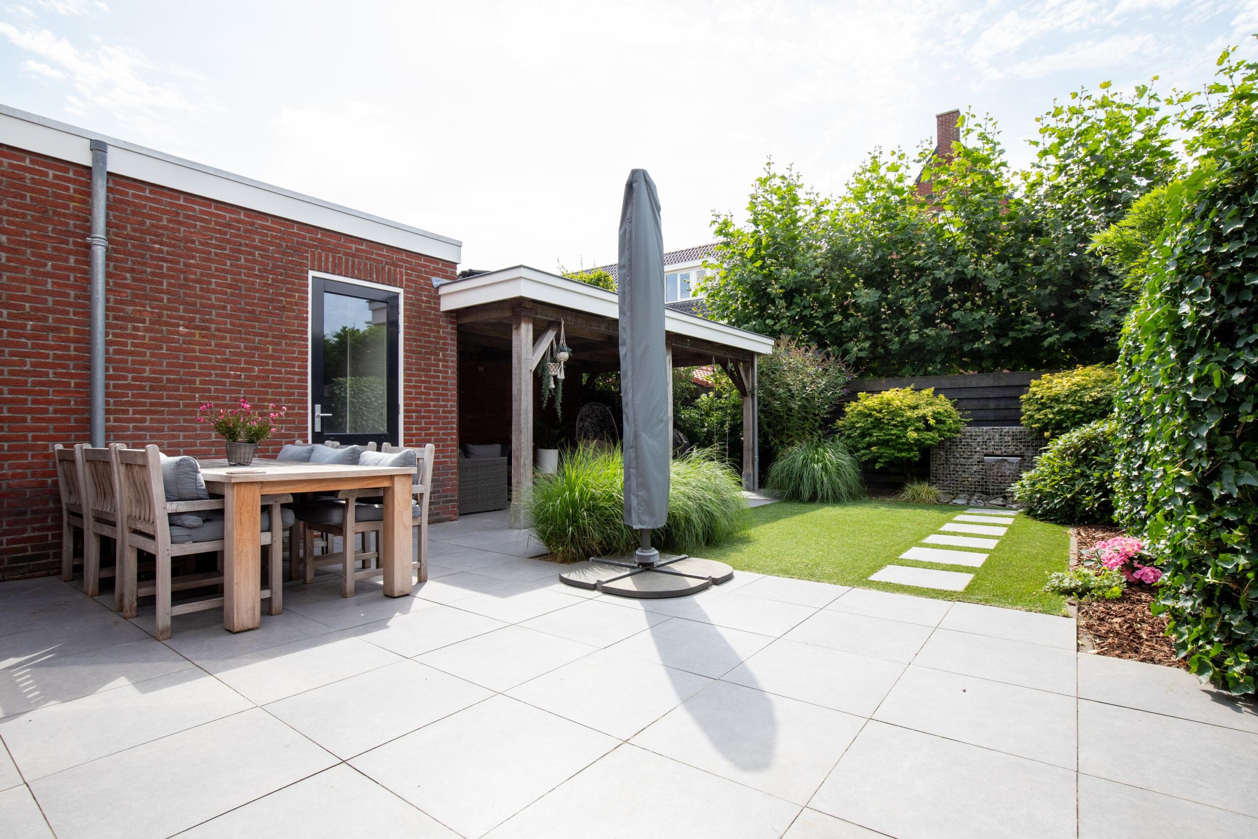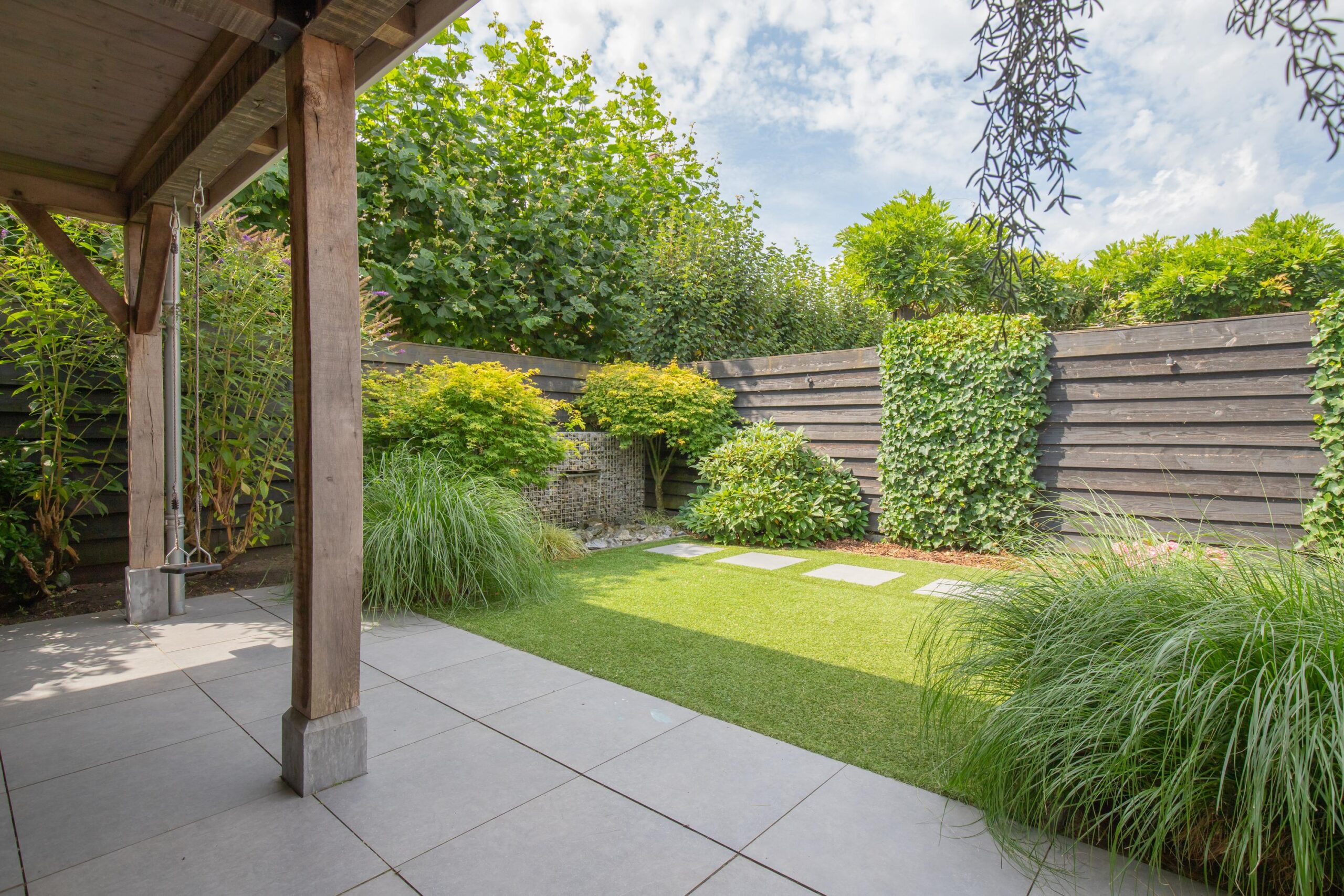 De zonnige achtertuin op het zuidwesten biedt volop privacy en rust. Hier geniet u de hele dag van de zon op het terras, tussen de groene borders en het gazon. De sfeervolle veranda maakt het plaatje compleet – een heerlijke plek om lange zomeravonden door te brengen met familie en vrienden.
